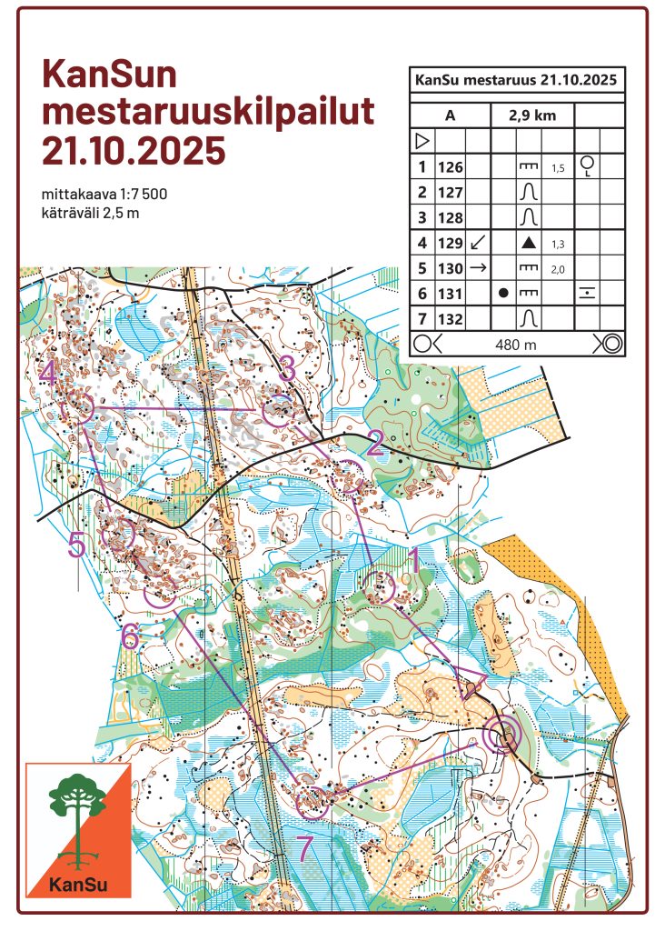 KanSun seuranmestaruuskilpailut käytiin tiistaina 21.10. Myllykankaalla. Radan oli laatinut kilpailun sääntöjen mukaisesti viimevuotinen voittaja Rami Tuominen etätyönä. Rastit vei metsään seuranmestaruuskilpailuiden sääntöjen laatija Jouko Huuhka. Kilpailunjohtajana toimi Reijo Mäkilä.